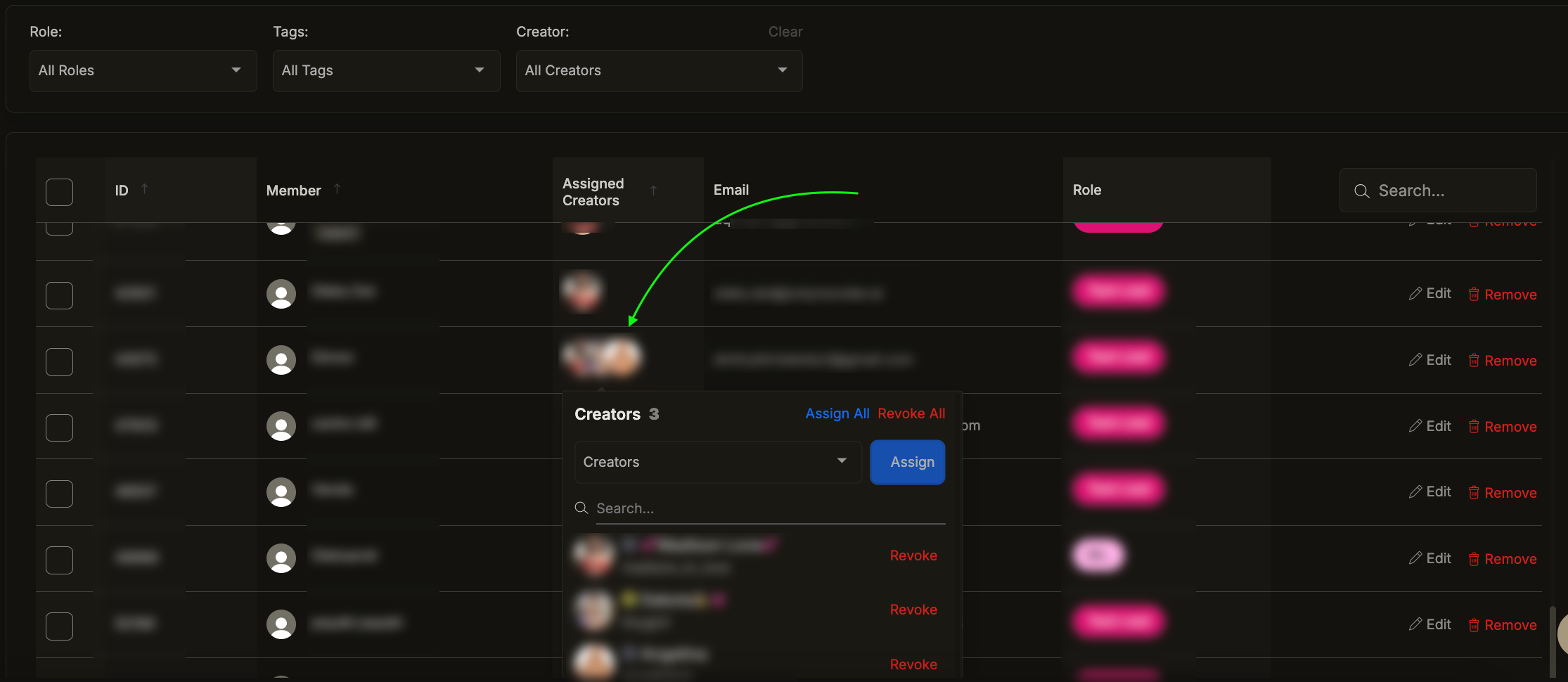 Choose an account from the dropdown menu and click "Assign Account" to grant access. To revoke access, simply click "Revoke." Use the "Assign All" or "Revoke All" options to manage Member’s access for all accounts at once.