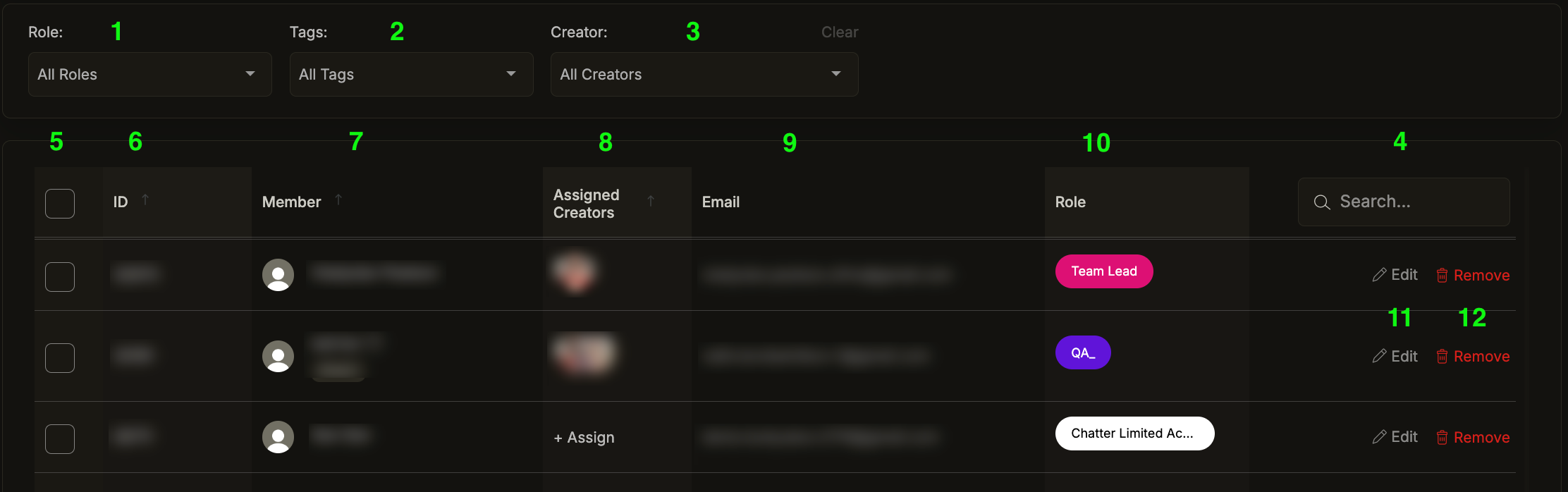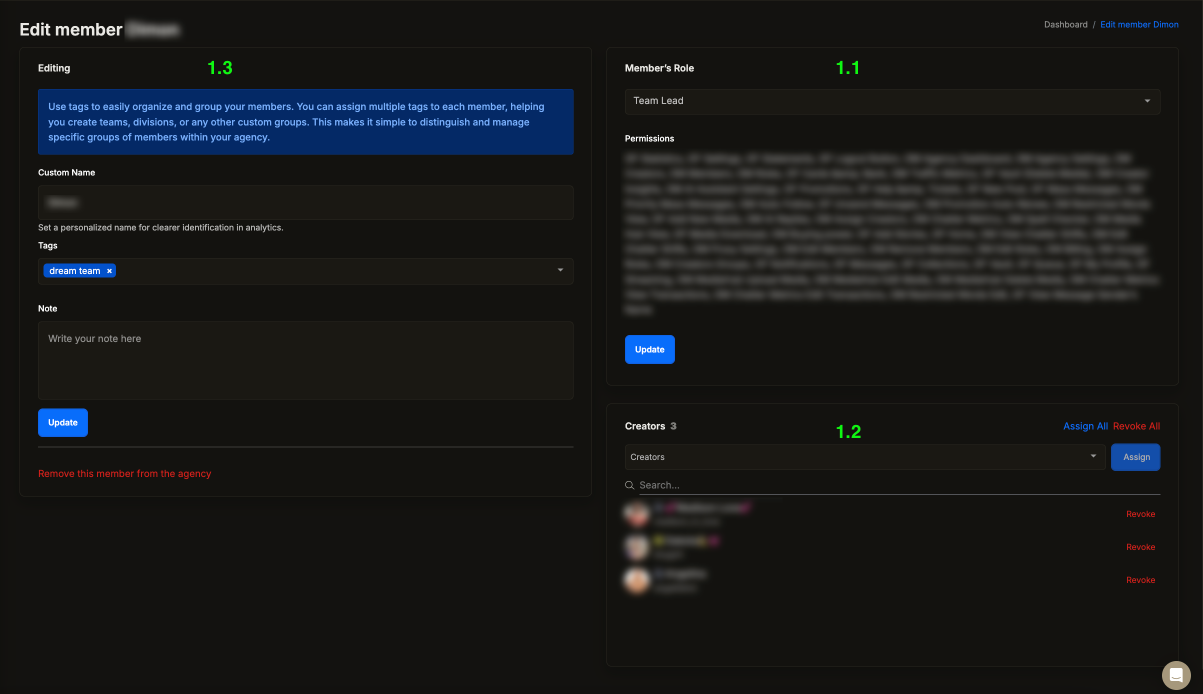 2. **Tags filter** - you can add tags for additional team segmentation ([more details on adding tags](#id-1.3-tag-or-delete-member-from-agency));&#x20;