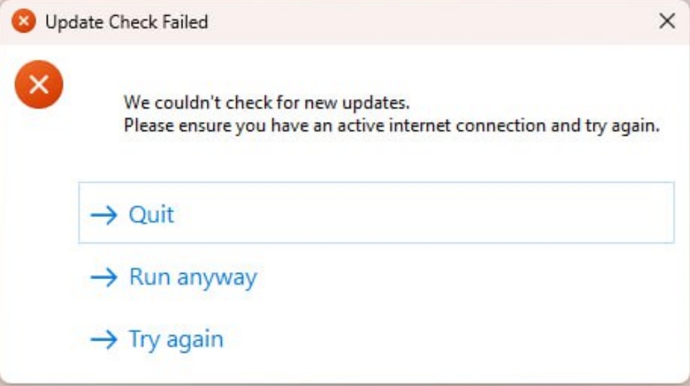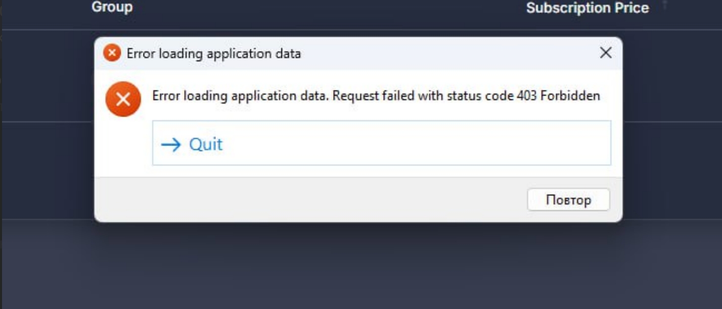 If this error occurs, close the application, wait 5-10 minutes, and then reopen it. This is a temporary issue that may occur after system updates.